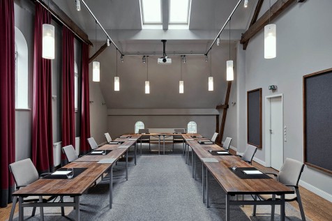 Unser Tagungsraum „Remise“ liegt im ersten Stock des Nachbargebäudes – ruhig, hell und mit einer 10 Meter hohen Decke, die für eine offene, inspirierende Atmosphäre sorgt. Hier kommt jeder auf seine Kosten: Ob Workshop, Meeting oder Brainstorming – bis zu 30 Personen finden Platz, und die Bestuhlung passt sich flexibel Ihren Ideen an.
