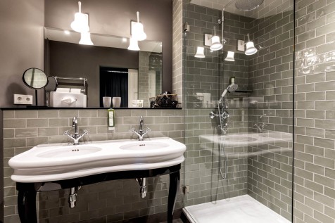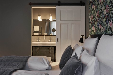 Luxurious Barn-Style – a unique mix of authentic, untreated natural materials and a high-end design, with stylish bathrooms behind solid wooden sliding doors.